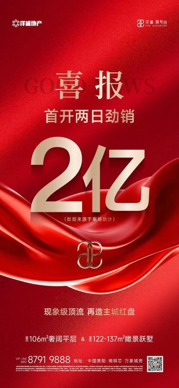 在这样的背景下,洋浦·頭号山的出现,无疑成为了贵阳楼市的一颗璀璨明星。项目一经开盘,便引发了市场的强烈关注和购房者的热烈追捧,首开即清栋,短短2天销售额破2亿,成为现象级顶流热盘。