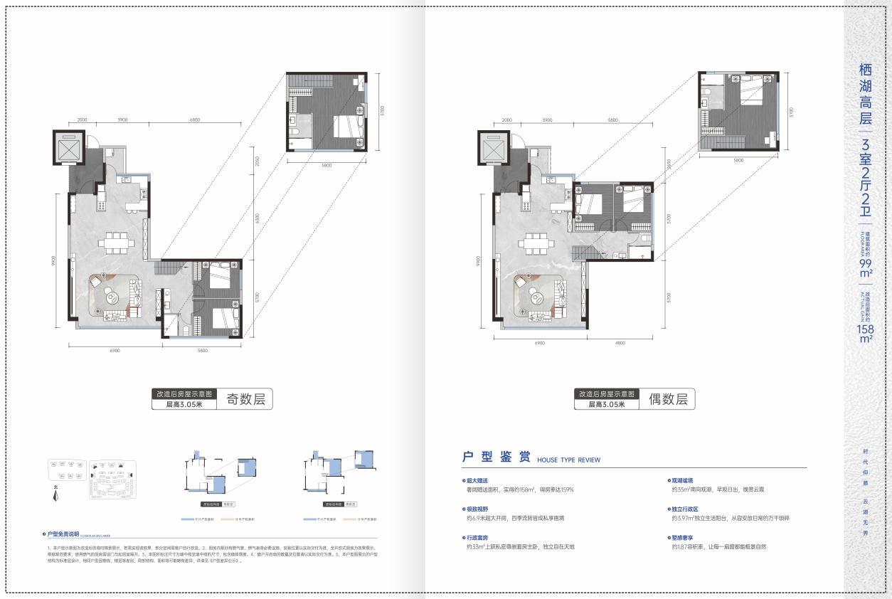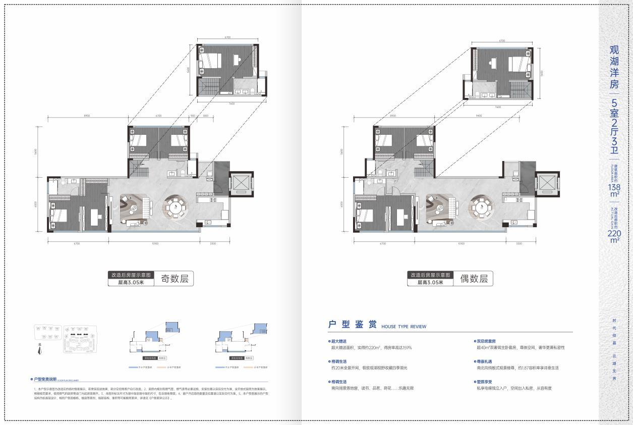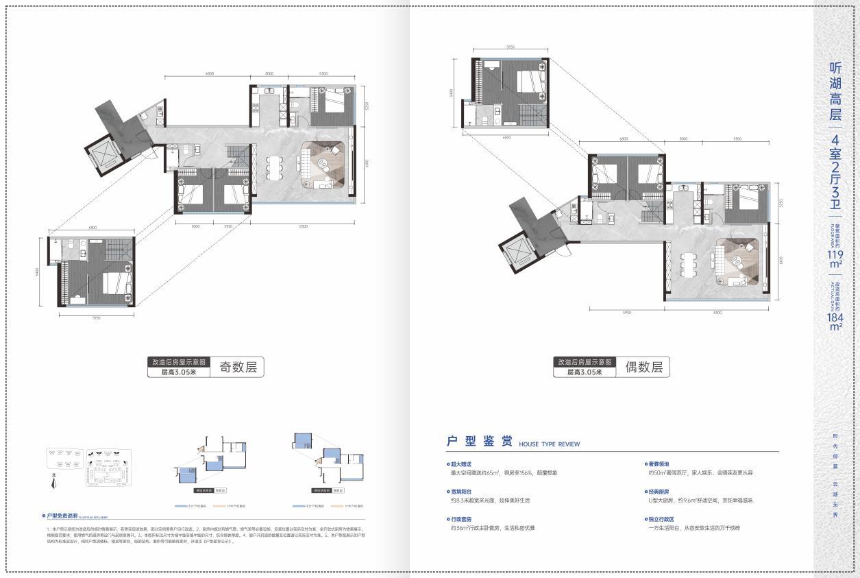 舒适洋房:仅3栋8层低密亲湖臻洋房,采用纯粹的“2T2户”设计,主力建面约139平米,得房率约159%,兼顾私享与通达。
