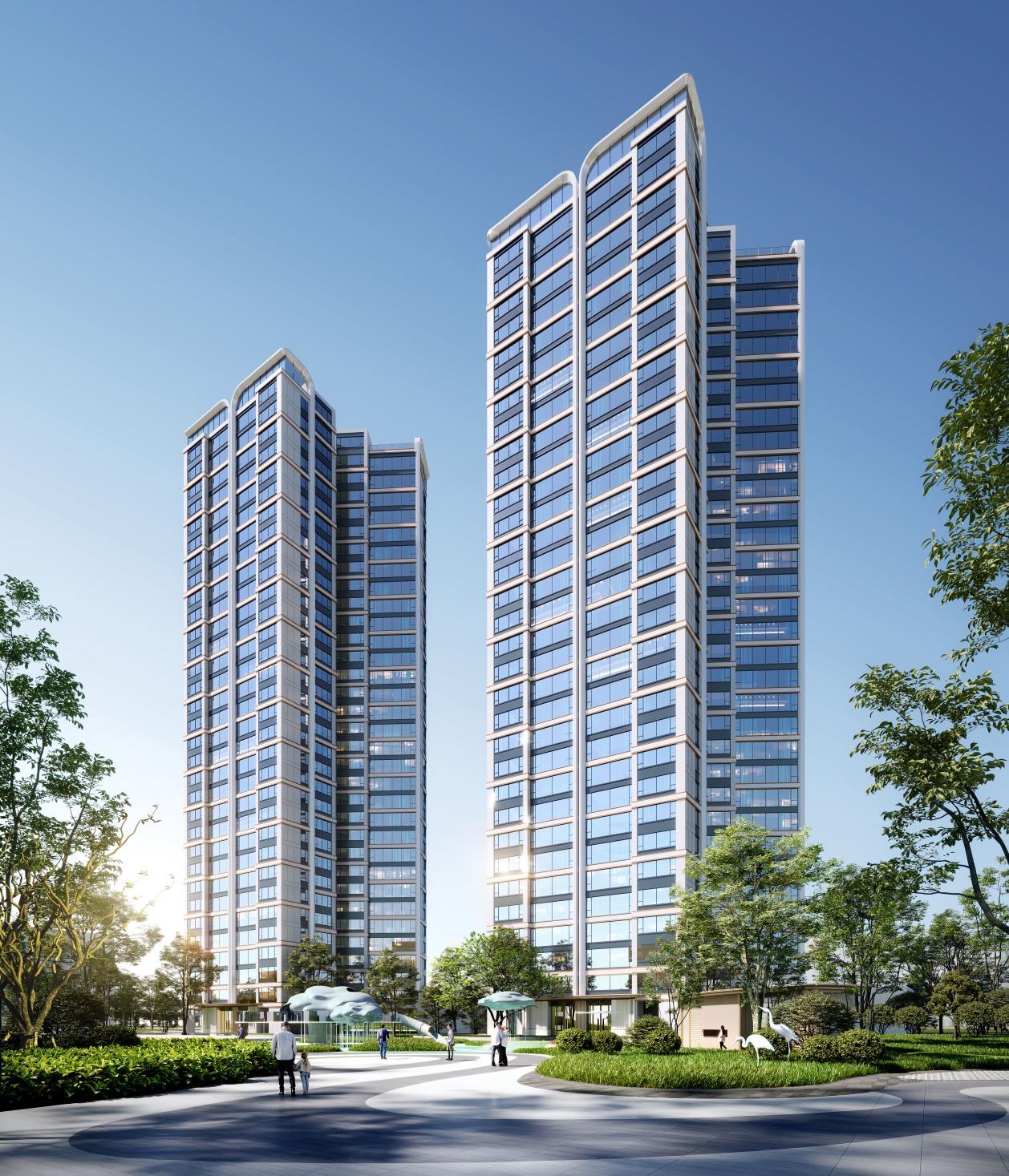 建筑立面独具特色:从湖面的柔波与游艇的流线中汲取灵感,以横向铝合金线条为“笔触”,勾勒出流畅而富有张力的建筑轮廓。公建化立面设计,结合大面积玻璃幕墙,营造出游艇般轻盈灵动的视觉感受。
